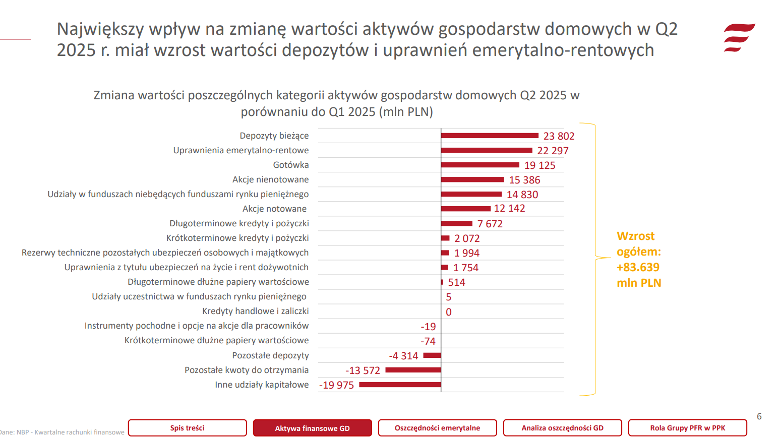 • W porównaniu do drugiego kwartału 2025 roku wartość aktywów wzrosła o 4,7%, w porównaniu do analogicznego kwartału rok wcześniej aktywa były o 9,9% większe.