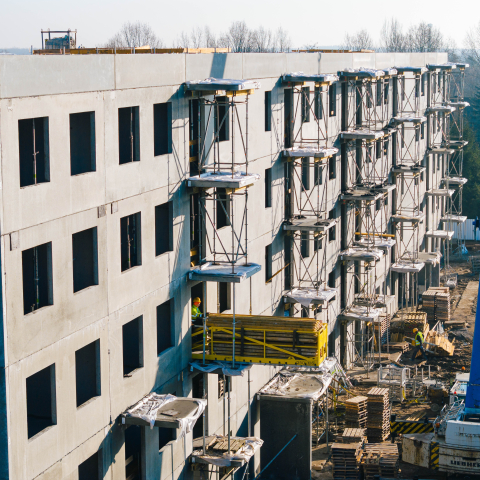 Obecnie roboty budowlane są kontynuowane pomimo niedogodnych warunków atmosferycznych. Cięższa niż zwykle zima z pewnością wpływa na tempo prac, jednak dzięki wykorzystaniu prefabrykacji nie zatrzymała ich całkowicie, co często ma miejsce na tradycyjnych budowach. Stawianie ścian prefabrykowanych, które przyjeżdżają prosto z naszych fabryk zajmuje dużo mniej czasu niż w przypadku budowy z monolitu. Aktualnie jesteśmy na poziomie 3 kondygnacji, betonujemy stropy - mówi Marek Stańdo, kierownik projektu, Pekabex.