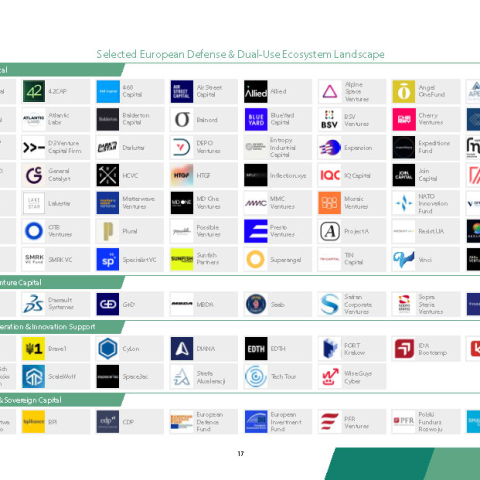 Nowe wydanie prezentuje mapę europejskiego ekosystemu inwestorów, funduszy i akceleratorów – od programów takich jak NATO DIANA i FORT Kraków, po fundusze venture capital wspierane przez PFR Ventures, EIF, czy korporacje technologiczne, takie jak Airbus i Thales.