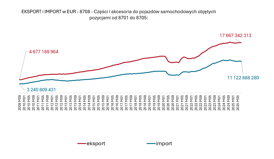 Dotychczasową nadwyżkę w handlu zagranicznym w branży automotive w dużej mierze zawdzięczaliśmy nadwyżce w handlu częściami i akcesoriami. Nadwyżka po sierpniu w tej kategorii wyniosła ok.  6,5 mld EUR.