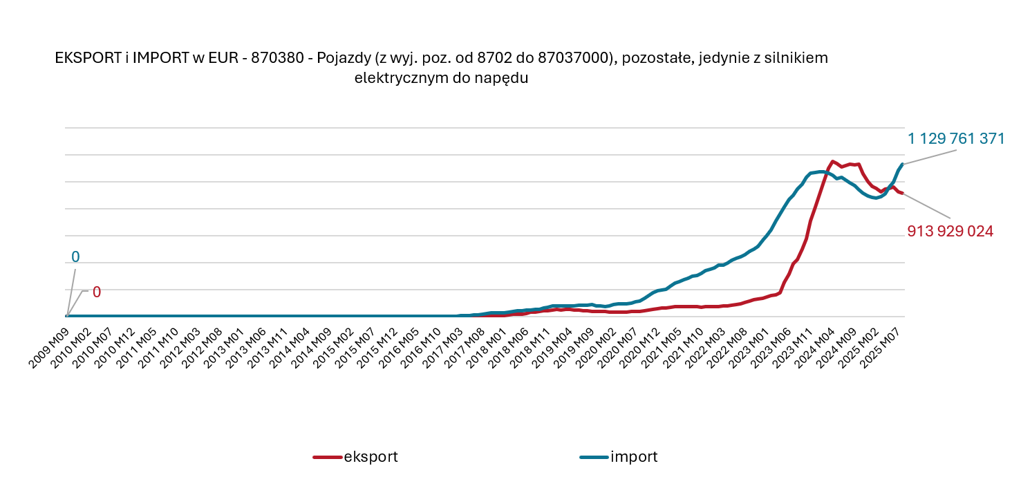 Polska eksportuje również samochody elektryczne. Eksportowane „elektryki” zawierają akumulatory jako integralną część a nie komponent, co powoduje w części spadek statystyk eksportu samych akumulatorów.