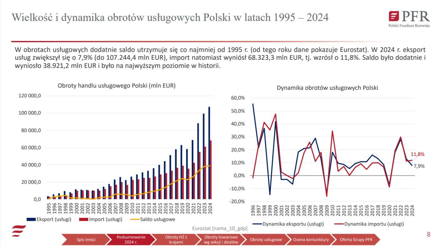 • Saldo obrotów usługowych było więc dodatnie i wyniosło około +29 mld EUR.