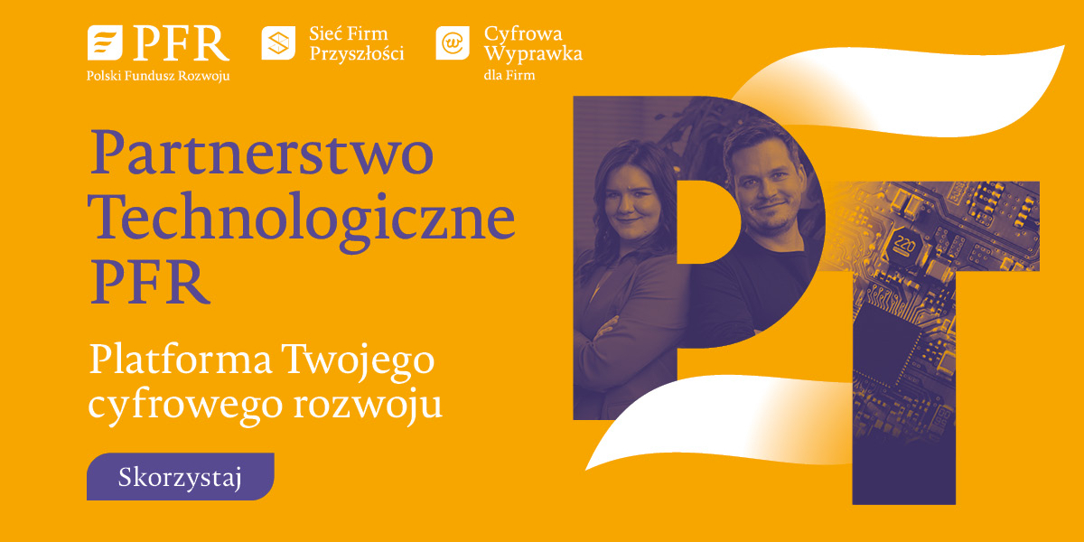 Partnerstwo Technologiczne PFR stanowi część programu Cyfrowa Wyprawka dla Firm, stworzonego dla polskich przedsiębiorstw z sektora MŚP, które chcą skutecznie wdrażać innowacje cyfrowe. Dowiedz się więcej o możliwościach wsparcia cyfryzacji i narzędziach dostępnych dla Twojej firmy na stronie programu.