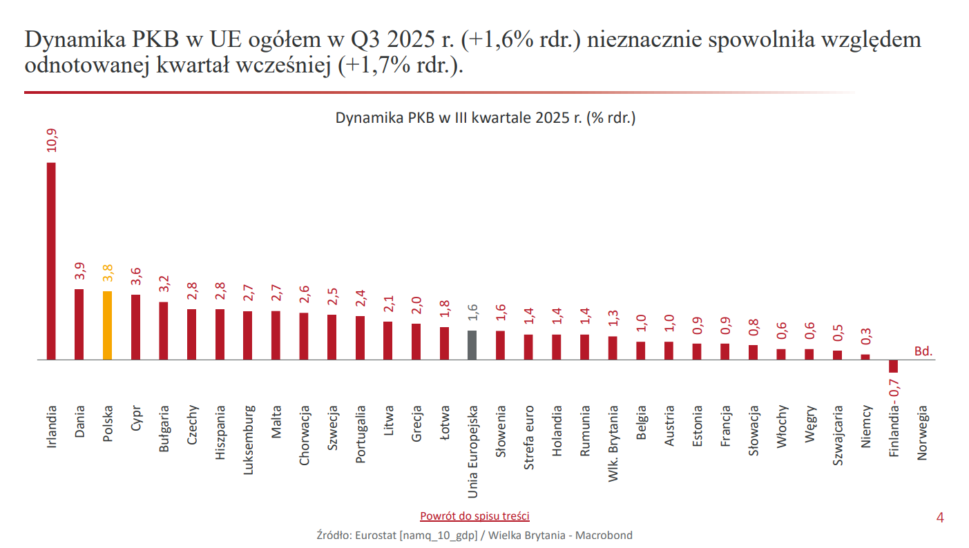 1. Dynamika PKB Polski w Q3 2025 r. (+3,8% rdr.) była trzecią najwyższą spośród wszystkich krajów UE i EFTA.