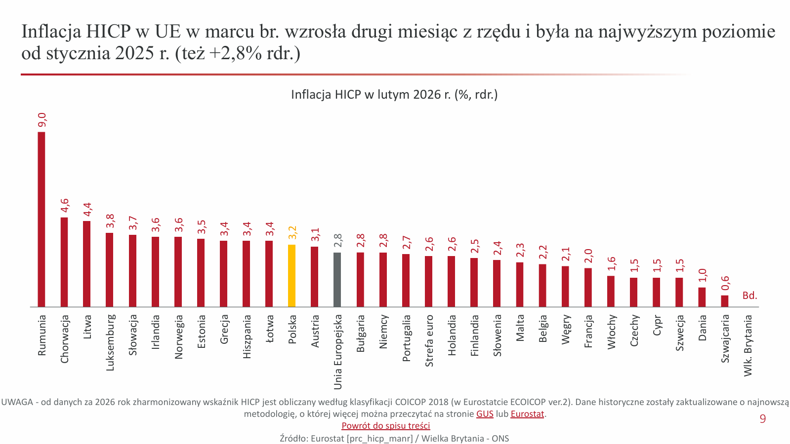 Inflacja HICP w Polsce wzrosła w marcu br. do +3,2% rdr., w porównaniu do +2,5% rdr. miesiąc wcześniej i +4,4% rdr. z marca 2025 r.